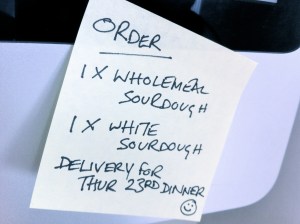 Order In Real Bread Posted on June 19, 2011February 2, 2015 by doughies Very exciting – this week doughies received our first informal order! Are you having a special meal? Got hungry hoards visiting? Drop us a line if you want us to make you some handmade loaves. Share this: Click to share on Facebook (Opens in new window) Facebook Click to share on LinkedIn (Opens in new window) LinkedIn Click to share on X (Opens in new window) X Like Loading... Related