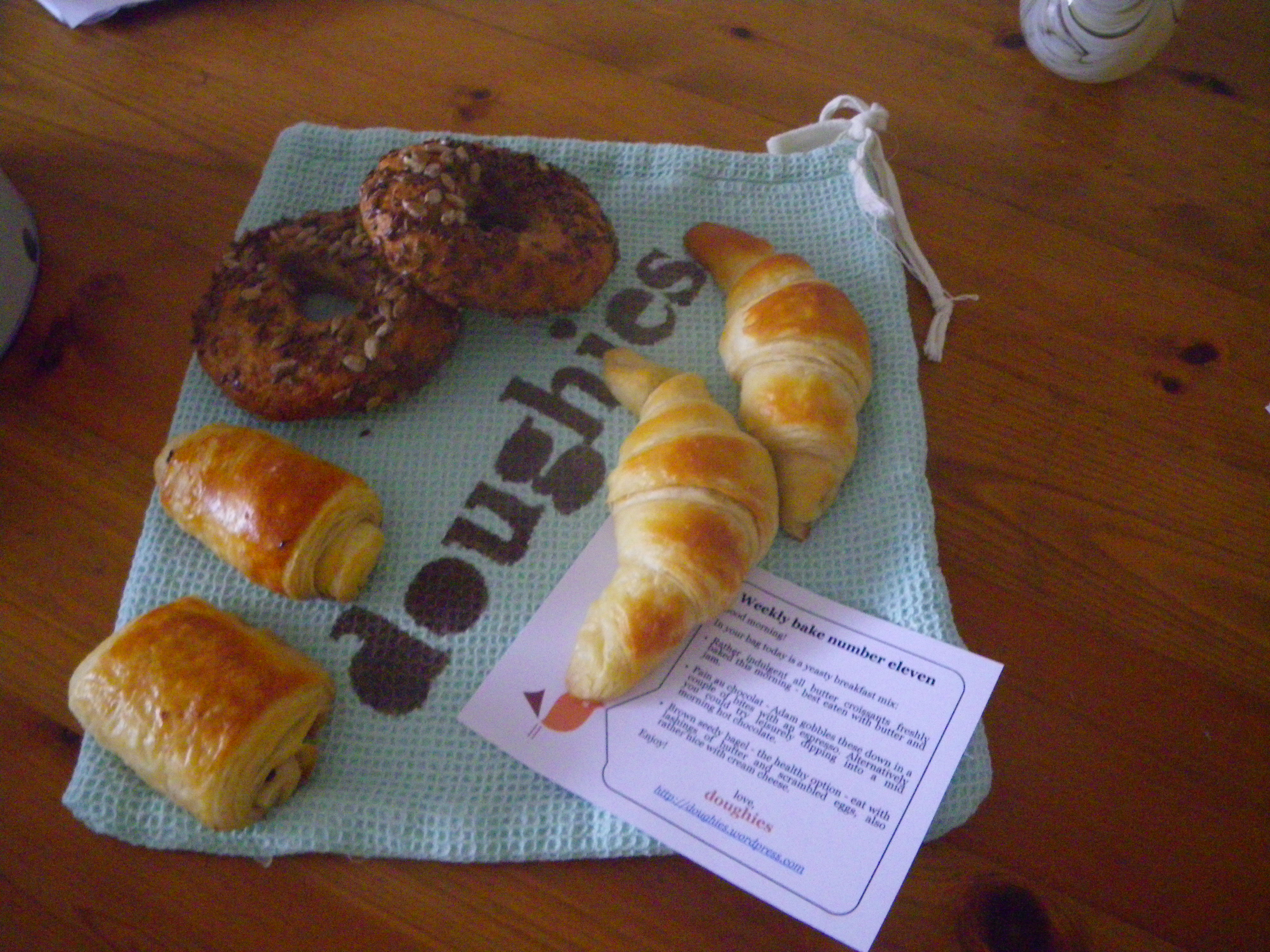 Weekly Bake No 11 Posted on August 7, 2011February 2, 2015 by doughies A few pics of Saturdays baked goods… The test run Saturday morning fresh from the oven What went into the bags Breakfast bags packed and ready to go The remnants – bakers breakfast! Share this: Click to share on Facebook (Opens in new window) Facebook Click to share on LinkedIn (Opens in new window) LinkedIn Click to share on X (Opens in new window) X Like Loading... Related